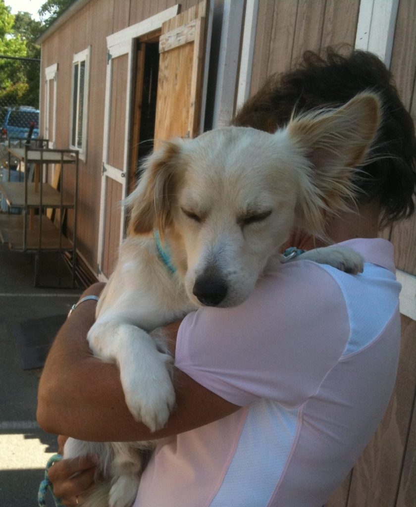 It was 9:30 p.m. on July 9, 2012. I was at Marin Humane, about to process a feral cat I trapped, when at the same time, an officer was carrying in an 18-month-old frightened fawn with white corgi mix. I immediately stopped and yelled, “Wait! Who is that?” And that, my friends, is how I met my dog, Skip.
