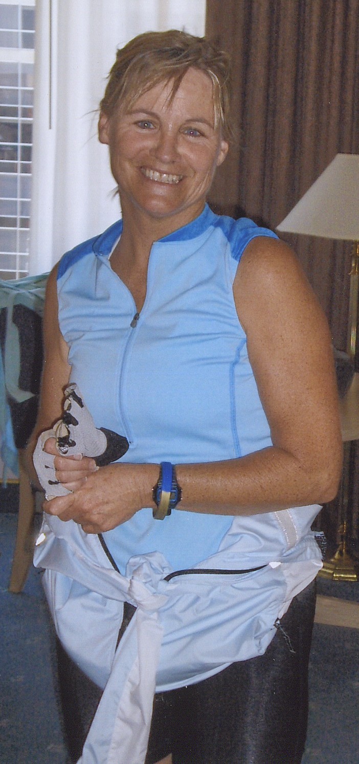 Needless to say, my triathlon had suddenly turned into a biathlon. Still, I suited up for the swim in the lake, emerging the same time as Pam and Margo. Will wonders never cease? They must have had leg cramps or something.