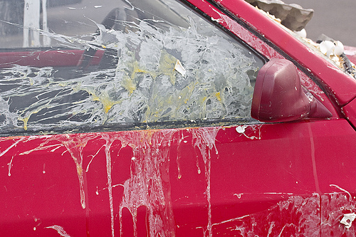 Perhaps you think I’m being harsh and maybe I am. But when I’m driving down the freeway and see that particular sign, I want to egg that car. (And I think there’s a good chance I’d hit my target, having been a softball shortstop for 10 years.) Then I’d watch with a smile on my face as the gelatinous slime rolls down the window, disappearing into those hard-to-reach crevices. And I’d hardly feel guilty at all.