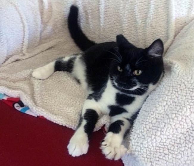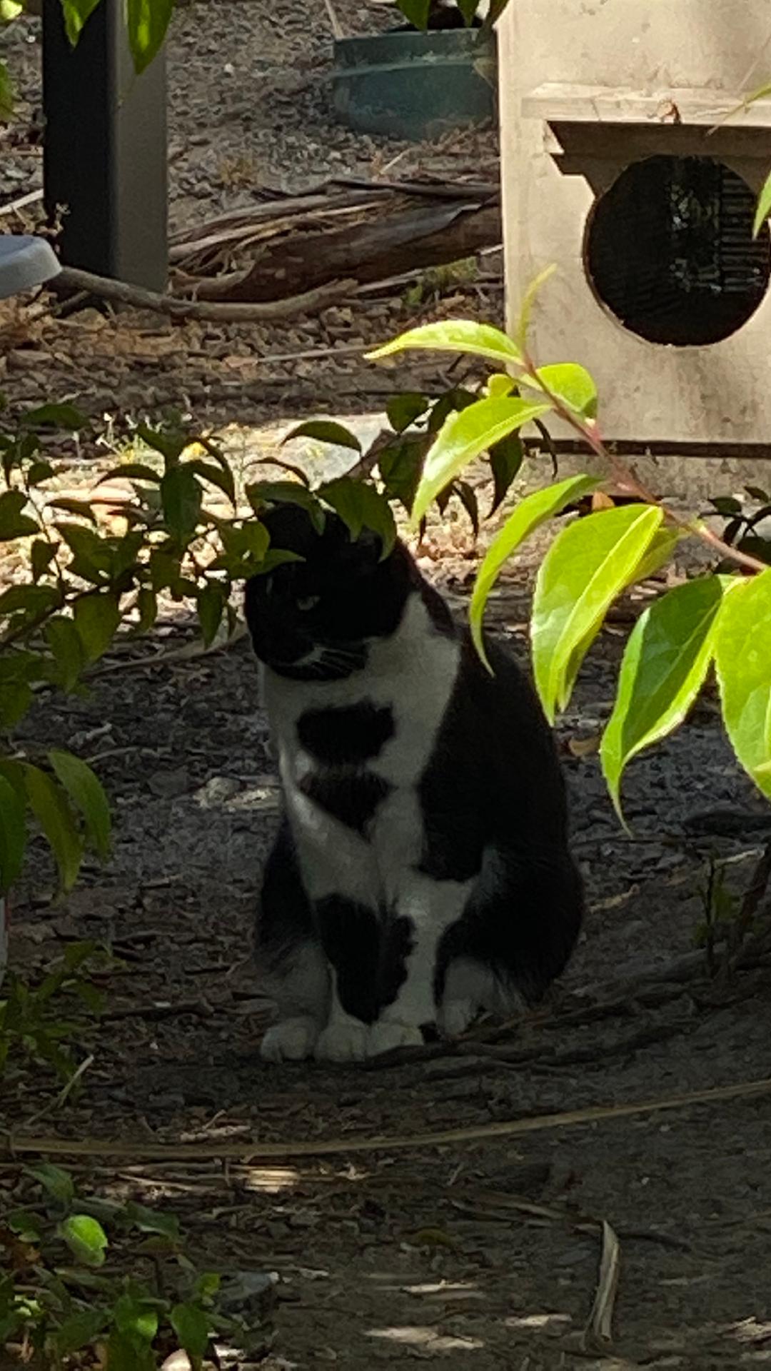 Since Oreo didn’t bolt when he saw Shirin (she’s a bit of a cat whisperer), she was able to snap his photo. But something about this cat caught my attention from the uniquely familiar markings on his chest.