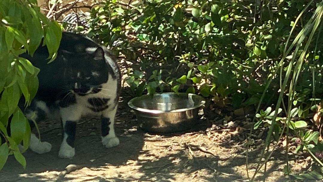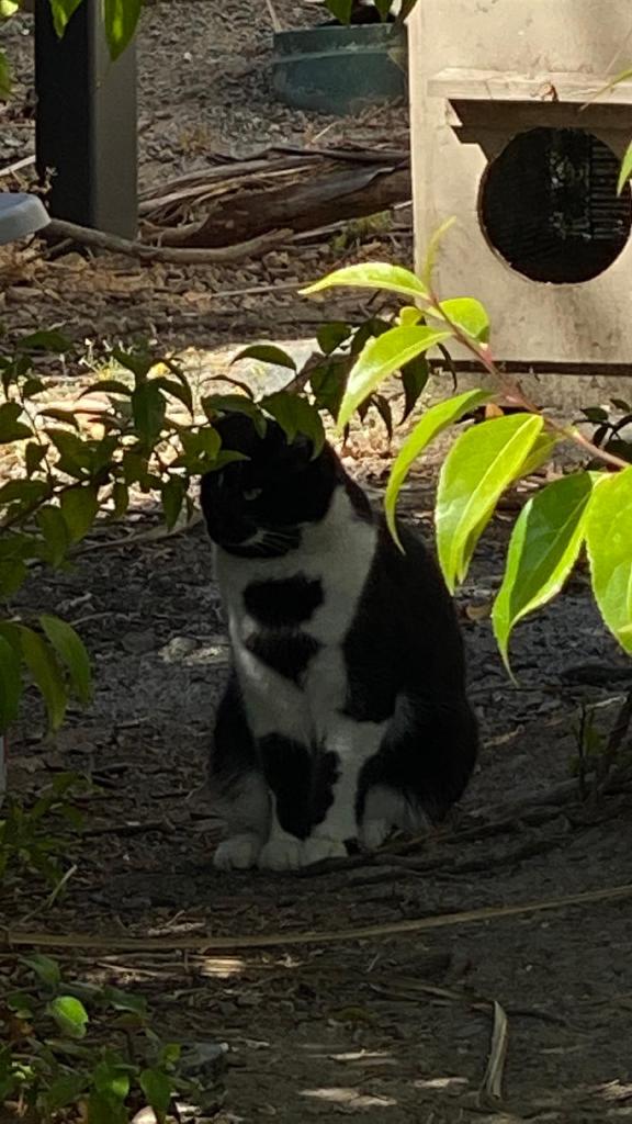 And that’s how we discovered a black and white cat engulfing the food at one of our locations. Our volunteer, Shirin, along with other volunteers, alerted us to this new cat at our feeding station.