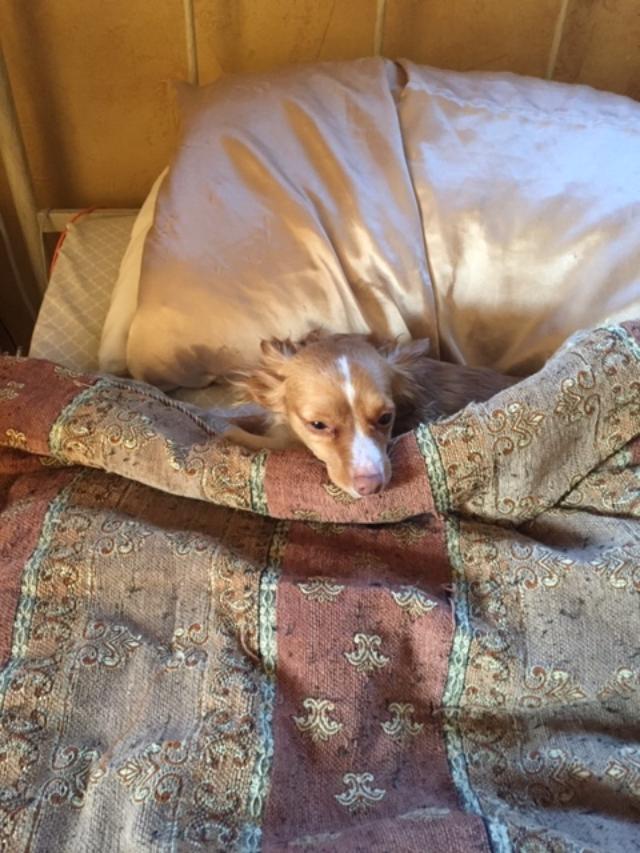 The vet tech sent me on my way saying they’d need to hospitalize Taffy overnight until her blood levels returned to normal. I’ve only had her for 22 months but it was odd having her gone for 22 hours. She sticks to me like Super Glue and normally sleeps under the covers curled into my neck. That part, I have to admit, I didn’t miss too much. I freely tossed and turned without her shooting me a look of annoyance for disturbing her slumber.