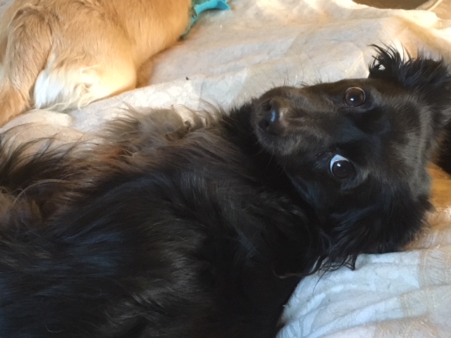 Before going to bed, all I have to say is Okay!, whereupon they all immediately jump up to head out back for one last pee. All except Taffy, who at this point in the day has already done her one complimentary outdoor pee. This means she sometimes has to wear a diaper to bed but she’s cool with it. That girl is very accepting.