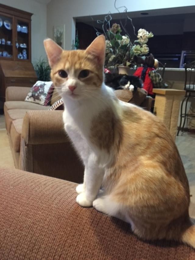 Three interested families quickly responded. I narrowed it down to a family with an orange male kitten whose littermate died so they wanted an indoor-only buddy for him. Now don’t get me wrong; I didn’t just hand over Dini. I went to their home and interviewed them before deciding they’d be a good fit.