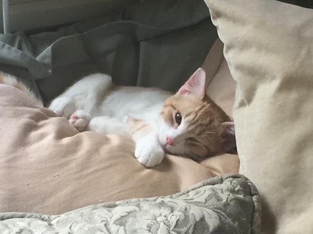 After 3 weeks, Anna needed another foster person so once Dini was spayed I volunteered for #242. (I’ve a soft spot for orange cats.) After a couple weeks, I posted her for adoption on our Facebook site, Marin Friends of Ferals.
