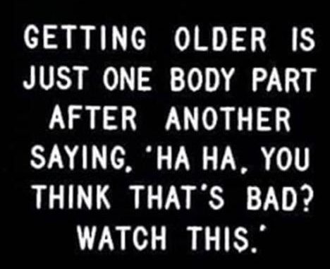 Anyway, we have to laugh at ourselves at this stage of the game and be grateful for the failing eyesight, wrinkly skin, foggy memory and the unfortunate ability to completely identify with those senior jokes friends email us.