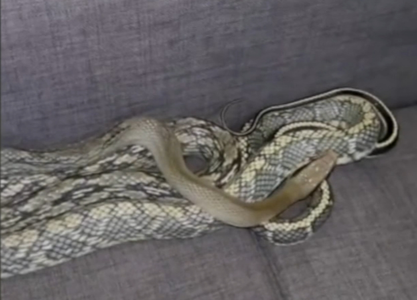 A San Diego man noticed something bumpy under his sofa cushion so he lifted it, no doubt thinking his sweatshirt had slipped under there. And there in all its snake-like splendor was a 7-foot Vietnamese blue beauty rat snake curled up taking an afternoon nap.