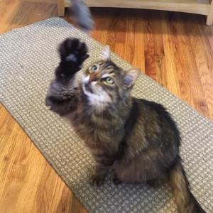 About 6 months ago, a woman and her daughter sent me a video of a long-haired tabby racing through the parking lot of Target late one night. The daughter captured him on her iPhone while her mom yelled, “Film him before he runs away! Hurry, don’t miss him!” Followed by, “I KNOW Mom! I’m getting him!”