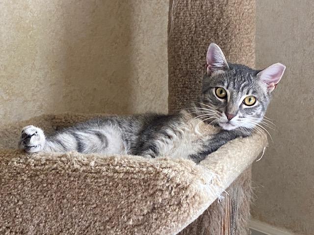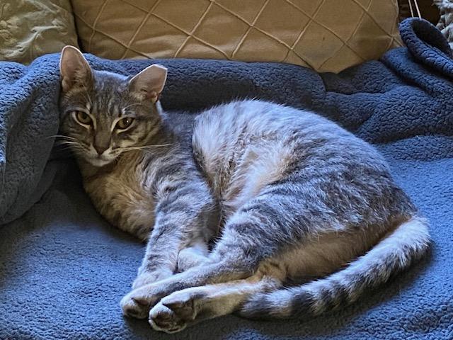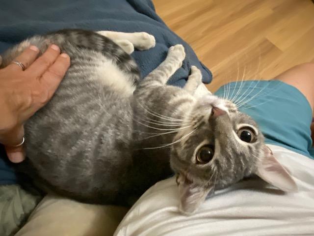 So three months into fostering my latest feral kitten, I suspected she was going to join the rest of my failed fosters. She seemed more comfortable with me but often ran when I entered the room. She’d sit on my lap but any sudden movement by yours truly and, like one of those flying squirrels, she’d be airborne and hiding before I could blink.