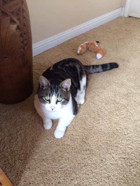When I brought Jack home, I discovered he was semi domestic. He settled in nicely so I decided to keep him. Failed foster #2. Jack thought he was in heaven discovering he didn’t have to compete for food. And that was the beginning of the end for him being svelte. He couldn’t help himself; he ate until he threw it up. And then he ate again.