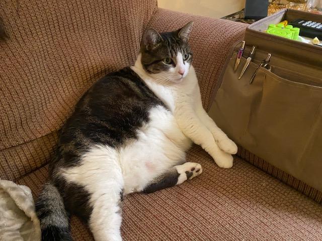 When I brought Jack home, I discovered he was semi domestic. He settled in nicely so I decided to keep him. Failed foster #2. Jack thought he was in heaven discovering he didn’t have to compete for food. And that was the beginning of the end for him being svelte. He couldn’t help himself; he ate until he threw it up. And then he ate again.