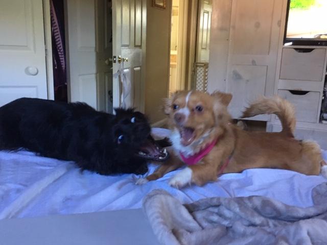 As you may already know, she fooled me into thinking she wasn’t a barker. But Wally showed her how, damn him. Today she frequently enjoys fence-fighting with my neighbor’s dogs (in that annoying, high-pitched Papillon-Chihuahua kind of way). Just lovely. That minuscule mutt is the loudest, seemingly fearless pooch in the whole bunch, often leading the charge to the fence.