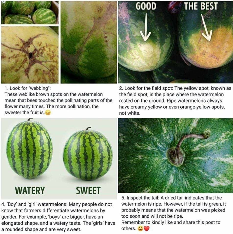 Needless to say, I credit my ability to choose a sweet, juicy watermelon to the tips Nana gave me 60 years ago. Whenever I eat them, I think of her and our seed spitting contests, so I think of her often. And now I’m going to share her tips with you, the same ones still suggested today.