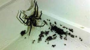 Here’s what happened: When the spider hit the floor, a bunch of baby spiders swarmed out from under her. I’ve never seen anything like it. About 30 tiny spiders (I lost count) scattered about the floor, probably scrambling to find mom who I’d already instinctively scooped up and brought outside.