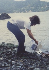 At Joan’s, she meets us at her door and quickly whisks us down the stairs leading to the beach. Sue and I are chuckling with the absurdity of the situation, but poor Charlie isn’t amused. We open the bag and place him on the pebbles next to the gently lapping waves. But he doesn’t move. We’ve killed him!