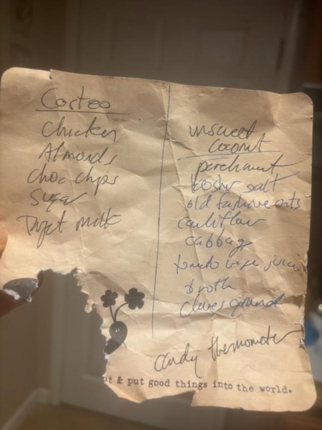 For added excitement, one of my cats who stubbornly won’t confess, ate part of my shopping list. My money is on Savannah, although she only has six teeth, but she’s excellent at gumming things. Fortunately, my horrible memory came through for me and I recalled what was missing from that nibbled section.