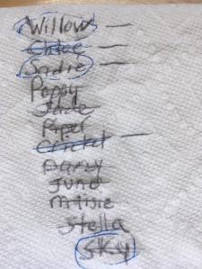 Then I called Trinity Sadie, although she didn’t look like a Sadie (whatever that looks like). That name soon became Chloe. But no matter how often I said it, it made absolutely no impression on her. In fact, I believe she ignored me even more than usual. Besides, Chloe is one of the top 10 names for female cats and she doesn’t strike me as a particularly trendy feline. So I went down my list of 12 names and said each one to her while looking for some sort of approval, maybe a look my way, a blink. Anything. But I got nothin’.