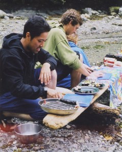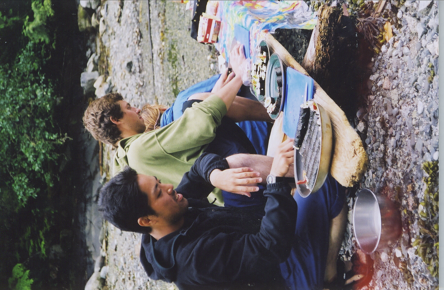 In exchange for washing the dishes, we were excessively pampered with scrumptious, hearty meals — burritos, pizza, smoked salmon, lasagna, baked biscuits with cheese — in a makeshift wooden lean-to dubbed the “Blackfish Café.” (Natives call orcas Blackfish.)