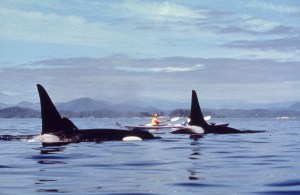 Whenever we heard the radio announcement that whales were sighted, we jumped into our kayaks quicker than firemen on a three-alarm call. Luke would drop a hydrophone into the water so we could hear them clicking and singing — incredibly moving vocalizations. One day we sat in awe as five orcas swam toward us. They were sleeping, pressed together on the surface in a horizontal line.