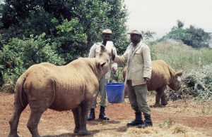 By studying the orphans found in Tsavo, Daphne became an expert on the behavior of native animals. After years of trial and error, Sheldrick developed the husbandry necessary to successfully hand-rear orphaned black rhino and elephant calves. In the early sixties, she perfected the milk formula necessary for infant rhino survival, then ten years later, did the same for milk-dependent elephant calves.